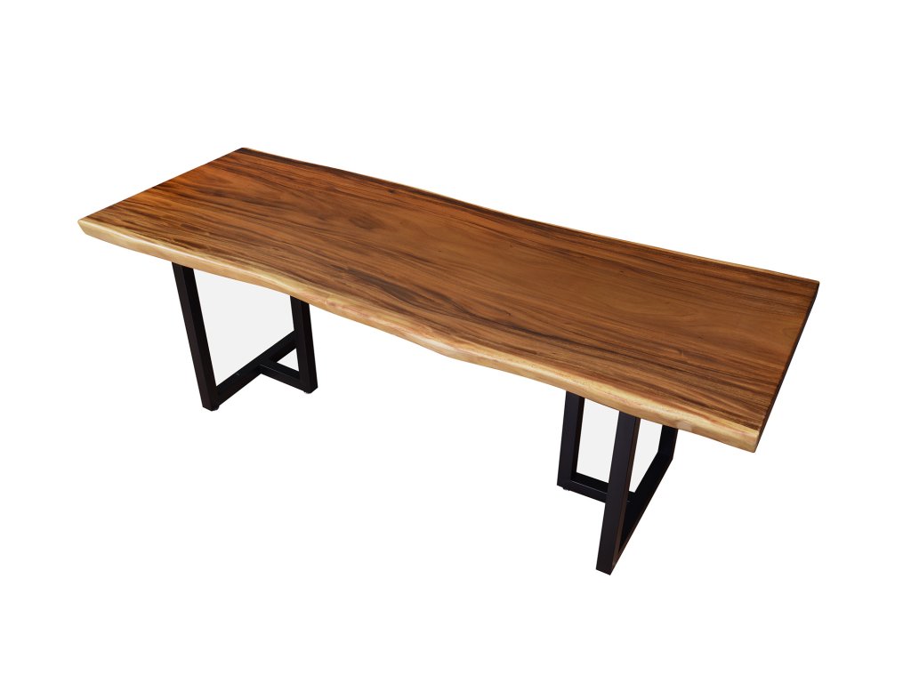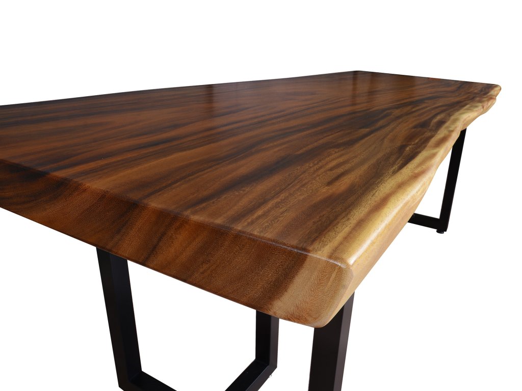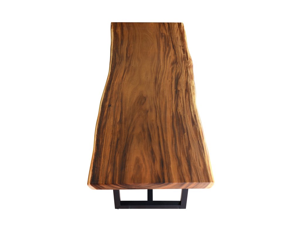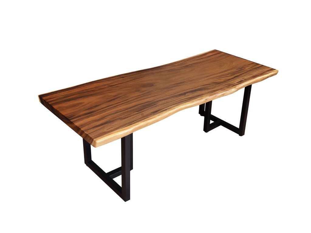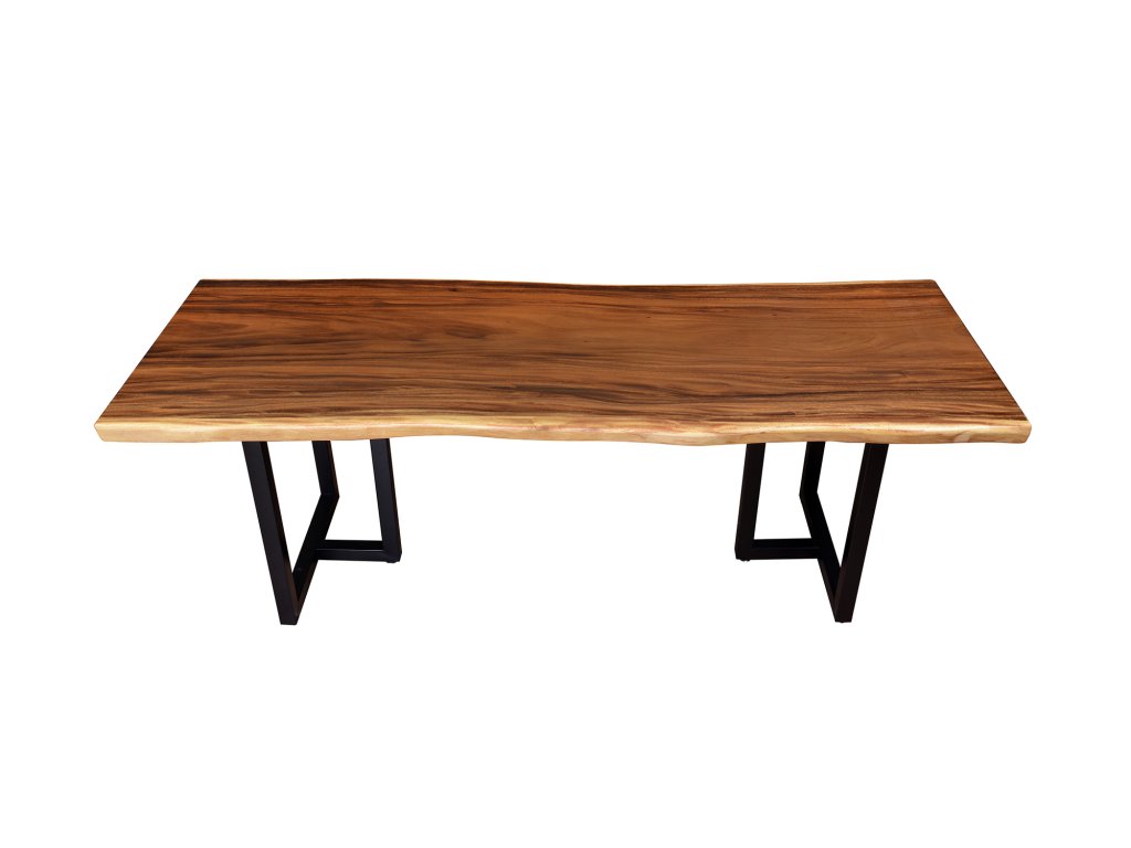 Teplý odstín ořechového dřeva krásně kontrastuje s černými kovovými nohami, jejichž čistý a pevný tvar dodává stolu moderní, lehce industriální charakter. Výsledkem je nadčasový design, který se hodí jak do luxusních interiérů, tak do minimalistických či loftových prostor.